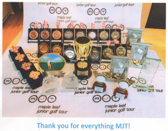 Awards collected from 8 years on the MJT by Ontario's Truman Tai, where his stroke average went from 83 to 71!