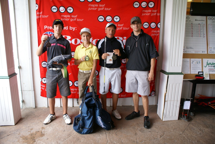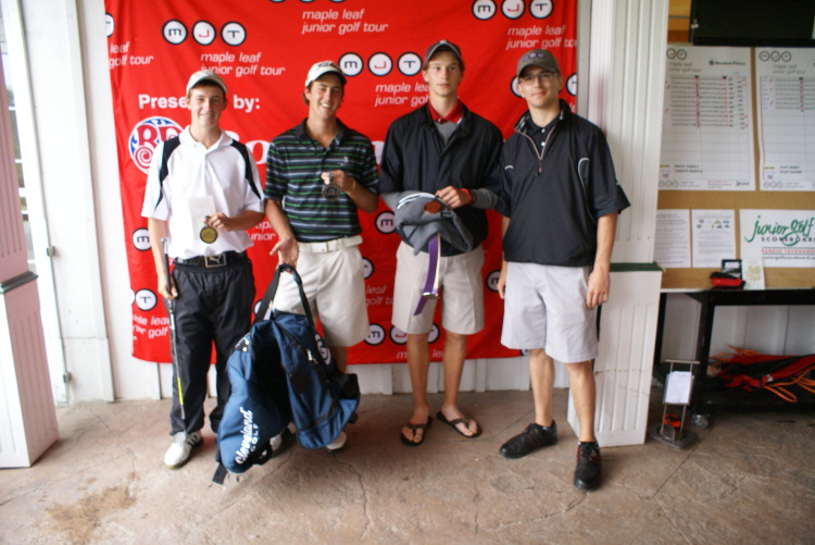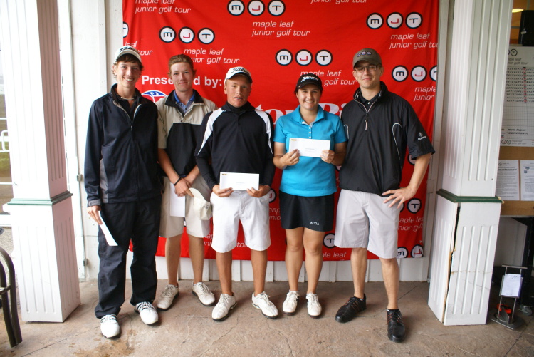 Cambridge, ON – (August 15, 2011) – The Maple Leaf Junior Golf Tour was scheduled for a two day 36 hole tournament at Whistle Bear Golf Club this past weekend however, mother nature had different plans on Sunday. Thunder, lightning and heavy rain forced MJT tournament officials to suspend play several times in the final round, bringing the kids off the golf course as the storms rolled past. Eventually, as a result of the delays, the tournament was shortened to 27 holes and the champions of three boy’s age division and one girl’s divisions were awarded. With an impressive first round of 71 and an even more impressive second round underway, Matthew Chiasson, 17, of Cambridge, ON, would be crowned the low overall champion (71+32=103). This distinction would earn Chiasson the MJT’s international qualifier for this event, a spot in the MJT’s winter golf school in Florida. As the “Road to College Golf”, the MJT provides opportunities for low juniors at each event to qualify for tournaments and events, this time sending Chiasson to Old Corkscrew Golf Club in Fort Myers, Florida for five days of instruction and development.