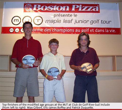 St-Basile-le-Grand, QC ? The inaugural Maple Leaf Junior Golf Tour (MJT) tournament in Quebec concluded last week at the Club de Golf Rive-Sud in St-Basile-le-Grand, where 15-year-old Max Gilbert of St. Georges closed with an excellent 71 to finish at 151 total score and win the Boys 15 and up division and low overall tournament score.